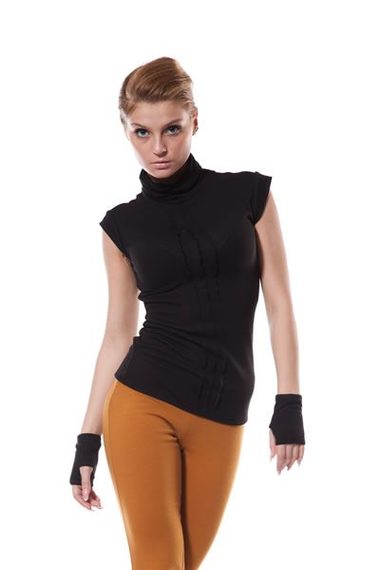 Комплект: водолазка + митенки черного цвета.